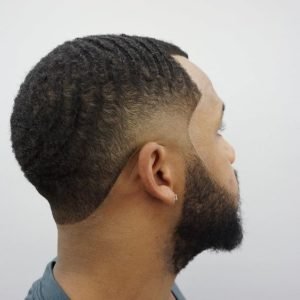 Combine your temple fade with waves on top of your head to achieve a distinct short style. Amazing contours and texture are skillfully accomplished.