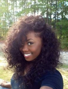 This beautiful girl has been endowed with thick curly locks, which she enhanced by weaving more locks to add definition and volume. With the proper outfit and accessories, this hairstyle can propel you to another level of fashion realm.