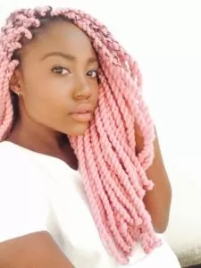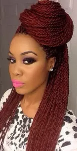 This is similar to Senegalese twists but need a third strand of hair to install and just use regular braiding pattern before merging into twist. We love this model’s hair color!
