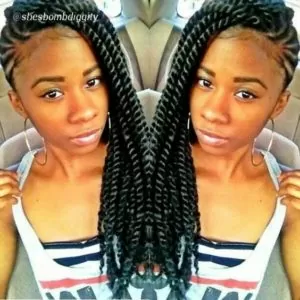 Beauty is in the eye of the beholder which must be everyone’s eyes then, because this style is gorgeous. The hair used is slightly thicker than Marley braids and is braided to one side.