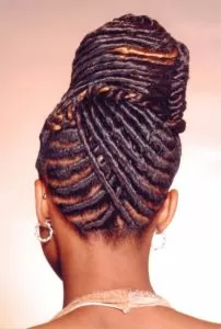 This hairstyle is shockingly a form of a twisted hairdo.The stylist will use Kanekalon fiber to first braid your hair out to the desired length of the locs. Then they will either use, Kanekalon fiber, Marley Braid or yarn to wrap over the plaited hair all the way out to the ends. The perks to wearing this do is definitely the fact that it can be removed and reinstalled without damaging your own hair in whatever state it is, unlike most real locs where you might need to either grow it out or get a haircut.