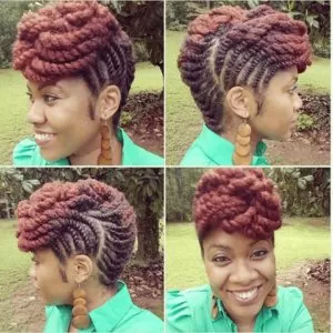 There are a myriad of combinations and patterns one can do for this twist style. The possibilities are endless which is why this particular Mohawk style is so popular. You can even unravel a few of the twists to the front and let them hang as a curly bang for shorter hair. This model’s brown to faded red ombre hair also compliments this style.